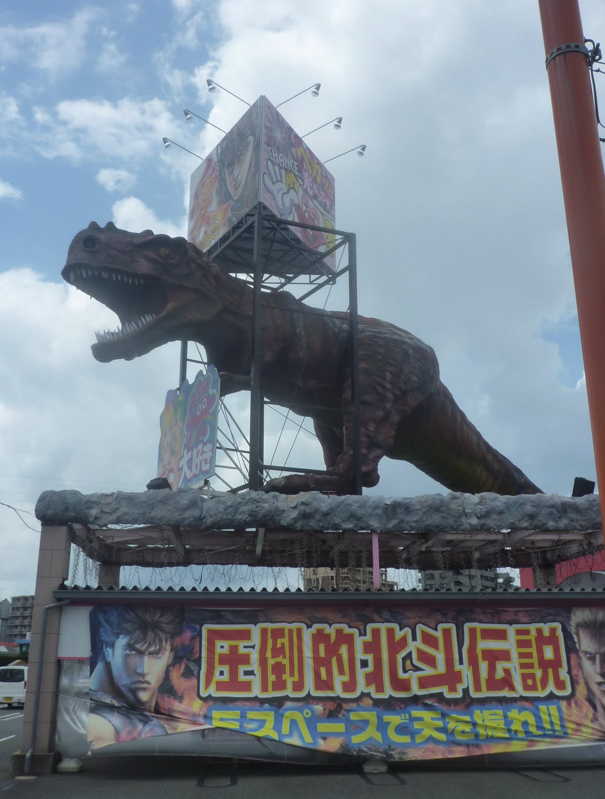 I had to bike out to Fukuoka Airport today to renew my visa. I don't really like heading to the airport because its a really unpleasant ride mostly through an industrial area. The only interesting thing brightening the journey is the tasteful artwork to be found in a Pachinko Parlour parking lot: